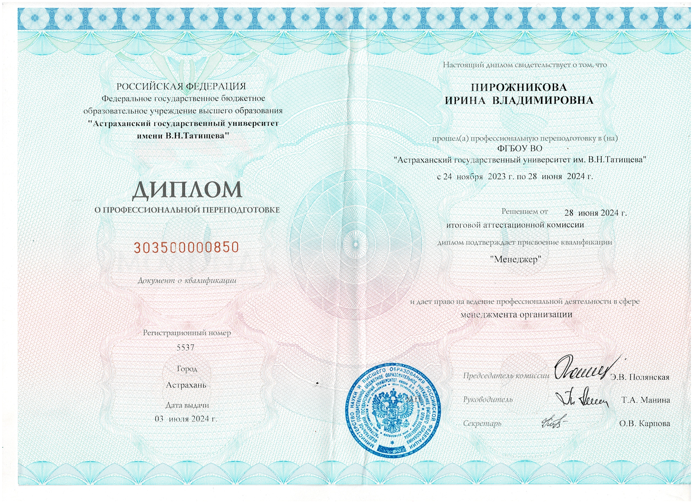 Ирина Владимировна Пирожникова лично.