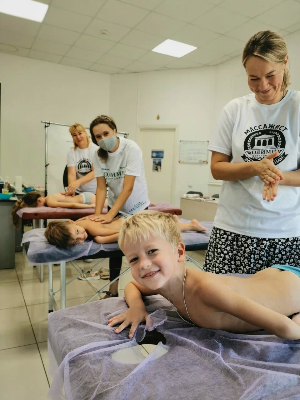 делает детский массаж